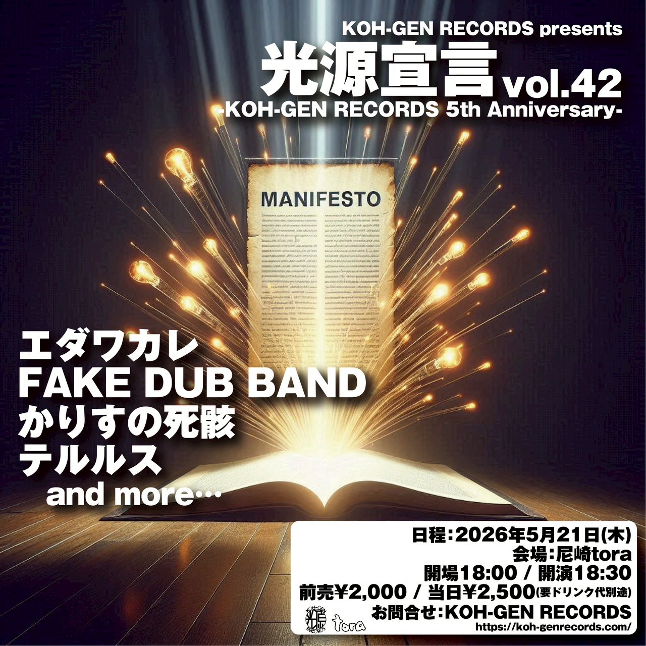 2026.5.21(Thu)KOH-GEN RECORDS presents『光源宣言 vol.42』-KOH-GEN RECORDS 5th Anniversary-@尼崎tora